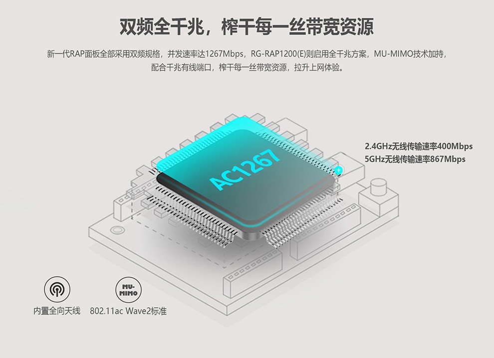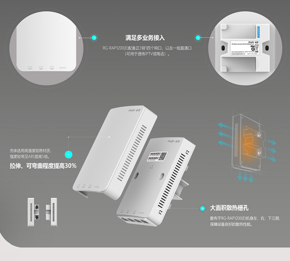 銳捷RG-RAP1200(E)無線ap面板千兆 雙頻1267M 雙LAN口無線接入點